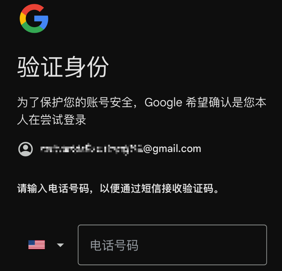 昨天一个朋友反馈,他的谷歌账号可以进入到手机验证界面了,自己的手机号码无法用于进行验证,用了我的就一次成功了。