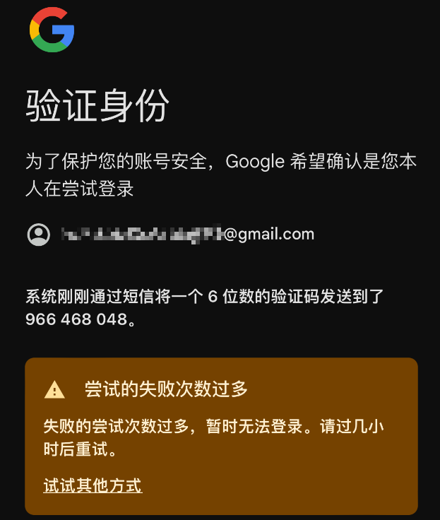 然后找我,等待了24小时候使用谷歌接受的手机号还是不行。