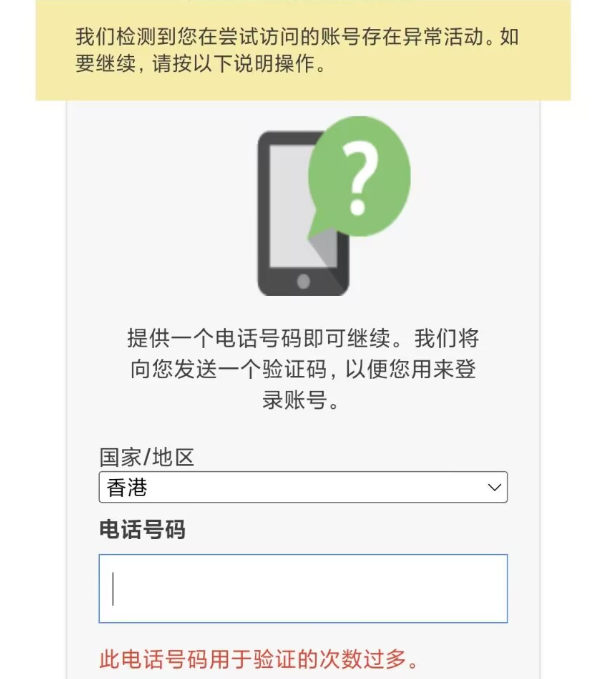 使用这个朋友的手机号码提示用于验证的次数过多。