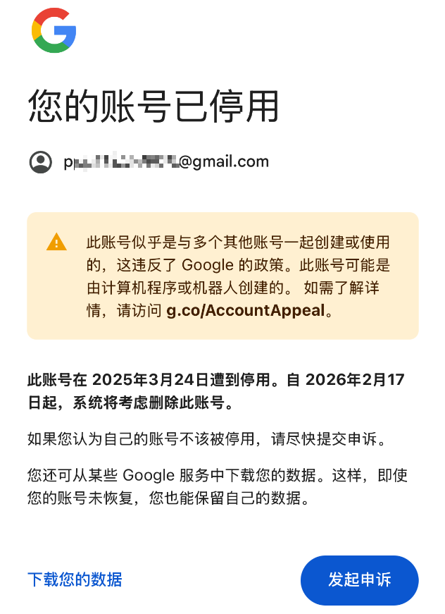 虽然扎心,但是这种情况并不罕见。往往是因为之前的多次尝试,导致谷歌提升了对账号风险程度的评价,从而直接停用了账号。